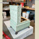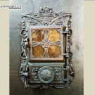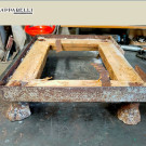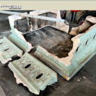 Ritornando all’intervento di restauro effettuato, c’è da segnalare il pessimo stato in cui ci è stata consegnata. A seguito di un incidente la stufa è stata rovesciata, frantumandosi in molteplici pezzi, come si può vedere chiaramente dalle foto. Anche lo sportello in ghisa con finestrelle in fogli di mica ha subito danni notevoli. Si è trattato di un restauro impegnativo ma che ha portato ad un risultato sorprendente, tanto per noi che per il proprietario. Ora finalmente è ritornata a fare quello che gli riesce meglio: riscaldare la casa e il cuore di chi la sa apprezzare.