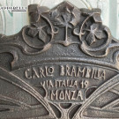 La storia di questa particolare stufa che abbiamo avuto il piacere di restaurare e riportare in funzione, non può essere raccontata in modo esaustivo. Documenti d’archivio sulla manifattura “Carlo Brambilla” di Monza non ne abbiamo ritrovati, vista anche la difficoltà dovuta alla distanza geografica. Siamo però riusciti a trovare traccia di questa ditta nell’ ANNUARIO INDUSTRIALE DELLA PROVINCIA DI MILANO – ANNO 1933. Alla pagina 184, nella sezione MECCANICI – Apparecchi di riscaldamento è riportata una piccola colonna con i dati dell’azienda. Si è potuto così scoprire la data di fondazione, il 1900, l’ubicazione della sede in quell’anno, e la tipologia di prodotti realizzati e commercializzati. Nell’annuario la sede dell’azienda è indicata in piazza Duomo 2 a Monza, mentre sulla stufa l’indirizzo riportato è quello di via Italia 19, sempre a Monza. Si tratta di due indirizzi che distano tra loro meno di 100 metri; è probabile che uno corrispondesse all’indirizzo dell’abitazione e sede legale e l’altro alla officina, o che magari negli anni ci sia stato un trasferimento. Di sicuro la stufa è antecedente al 1933: possiamo collocarla nel primo decennio del ‘900.