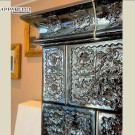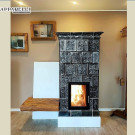 Stufa Sfruz S-12 Stufa antica Cavosi di Sfruz epoca 1890/1900. Rifacimento in chiave moderna. Profondità 65 cm, larghezza 70 cm blocco in maiolica + 70 cm blocco in muratura, altezza 175 cm.